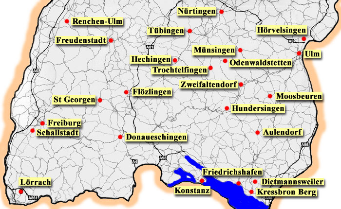 Ulmer Schlachthof Bräu Waldrast Barfüsser Hofgut Domäne Gasthof Lamm Brauerei Blank Gasthof Kreuz Klimperkasten Mooswald Heimbräu Ritterkeller Brauhaus Lörrach Lukullum Bräu Hausbrauerei Schöre Joh. Albrecht Max and Moritz Turm-Bräu Neckarmüllerbräu Pflug brewery Feierling, Martins-Bräu, Kl Freiburger Brauhaus Hirschbrauerei Fürstlich Fürstenbergische Brauerei KG Albquell Bräuhaus Brauereigasthof Adler